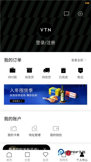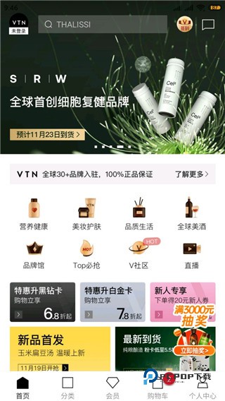 1、在本站下载并安装vtn商城,进入首页可以查看app各项功能
