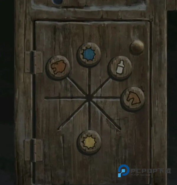 再查看一下左边的柜子,图案刚好对应我们黑板上的图案,调整【虎头↖】【奶瓶↗】【木马→】【蓝色↑】【黄色↓】打开下面的柜子,拿到一个【剪纸小人】和一面【锦旗】,剪纸小人的姿势看起来有点眼熟,不就是安全通道的那个跑步小人吗?出来,走廊触发老奶奶剧情,这奶奶一看就是言她的盲奶奶吧!后面还没玩不确定哦。
