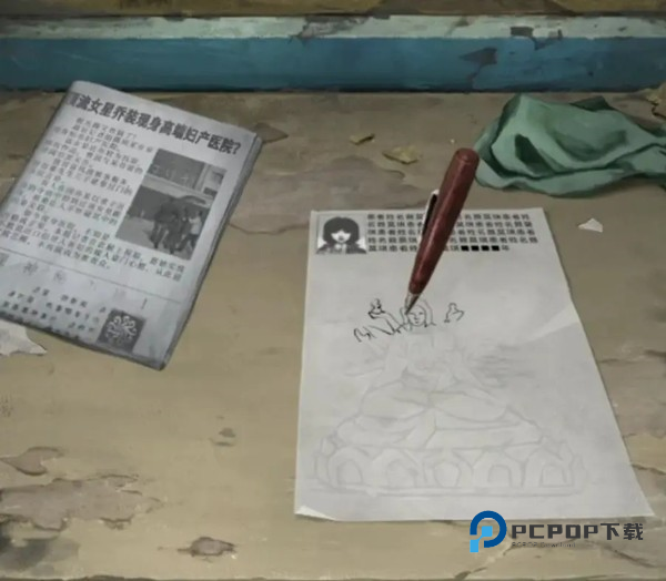 出门来到旁边办公室,对电脑旁边的打印机使用【墨盒】拿到【打印报告】,有提示说这个报告有很多空白的地方,所以我们再次回到右边房间,查看桌子对桌子上送子娘娘的位置使用【打印报告】之后使用【圆珠笔】就能开始临摹了,这个竟然不是小游戏米雪不是很认可啊!