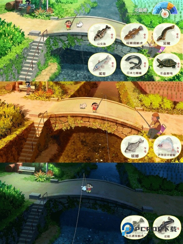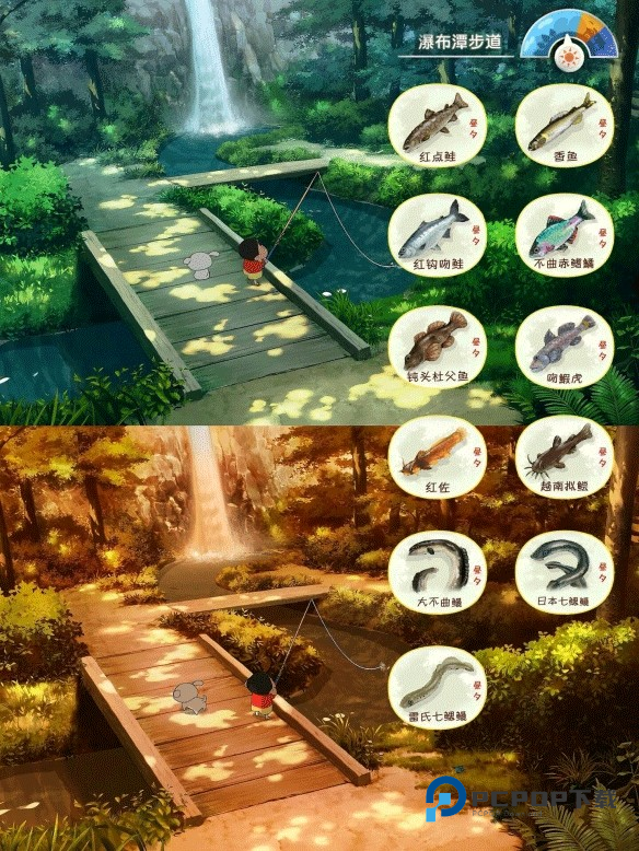 试着改变钓鱼的时间和地点,钓起想要的鱼吧。