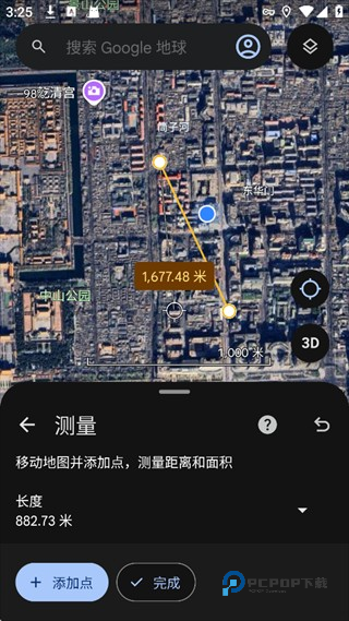 2、点击测量,移动地图并添加点,测量距离和面积。