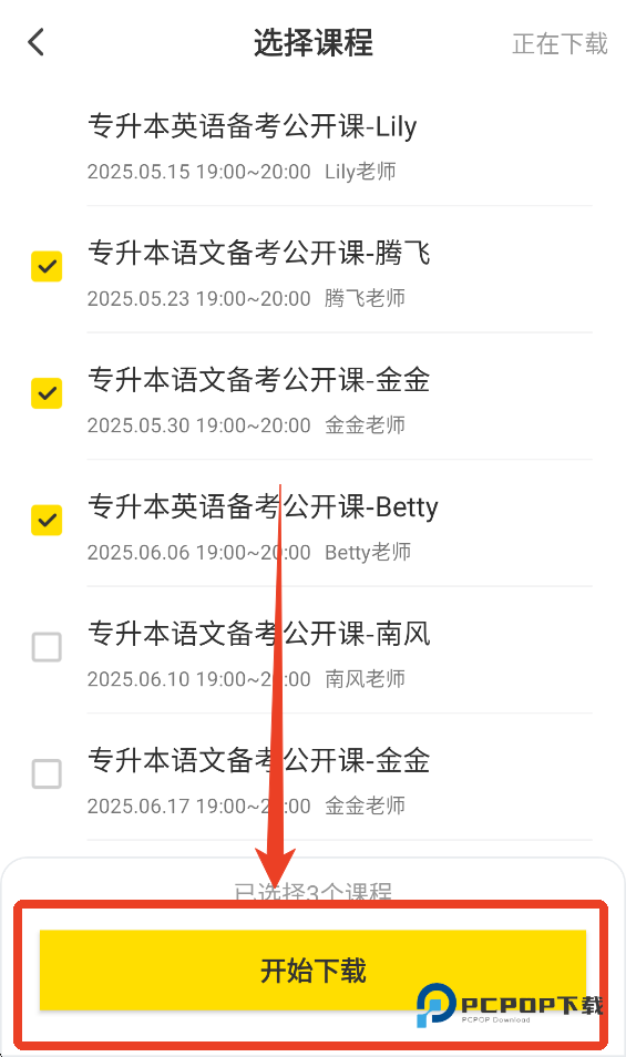 3、选择你想下载的课程,然后点击开始下载。