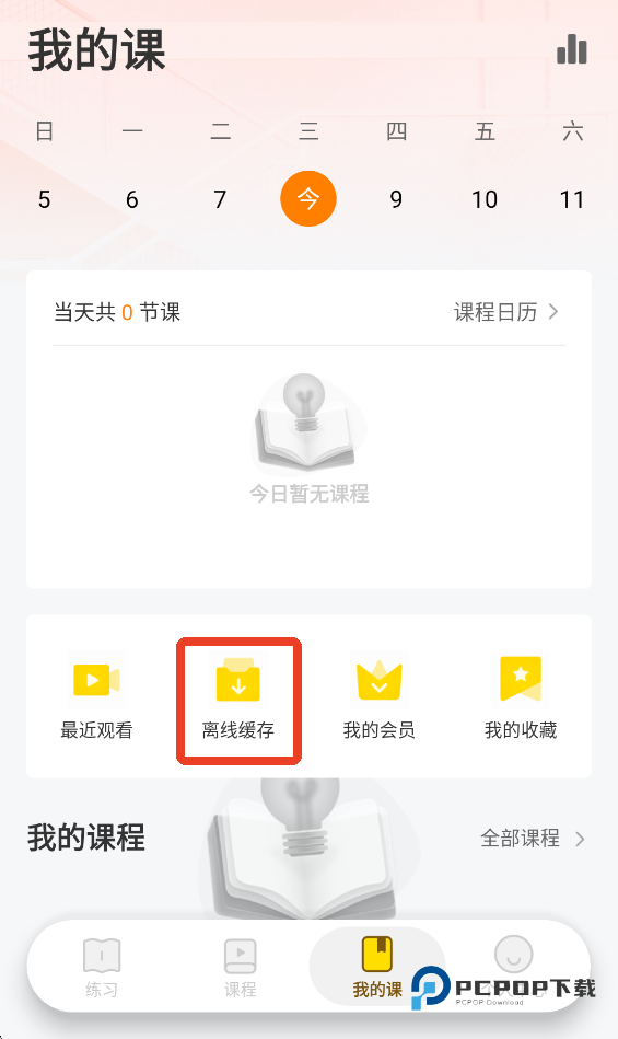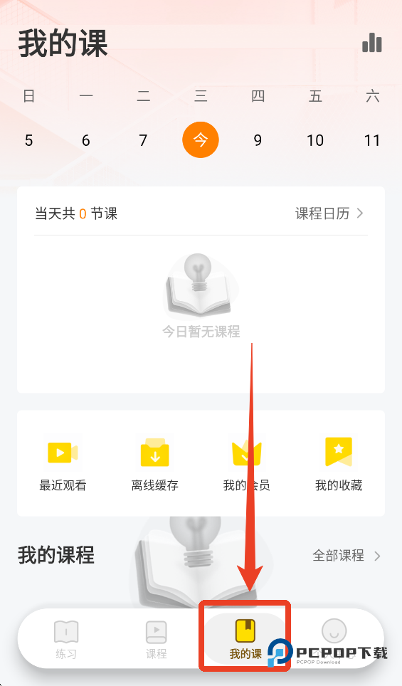 4、下载完成之后返回到主界面,点击下方的【我的课】。