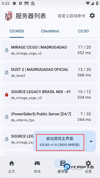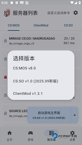 2、下载完成后,进入【服务器】板块,在列表中选择刚刚安装的游戏,并确认要使用的游戏版本。