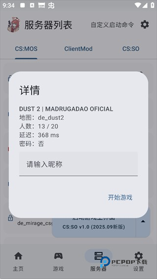 4、你也可以在服务器列表中任意选择一个服务器,点击进入后输入昵称,再点击【开始游戏】,即可直接开玩。