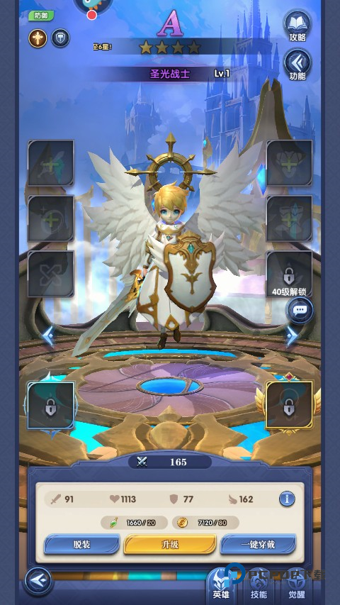 5、当你感觉闯关遇到瓶颈有困难的时候记得给英雄升级,这样闯关就会事半功倍。