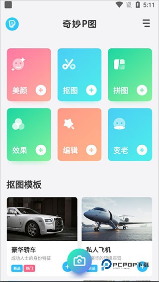 1、打开奇妙P图软件,首页如下图所示,包含了美颜、抠图、拼图、效果、编辑、变老六大功能。