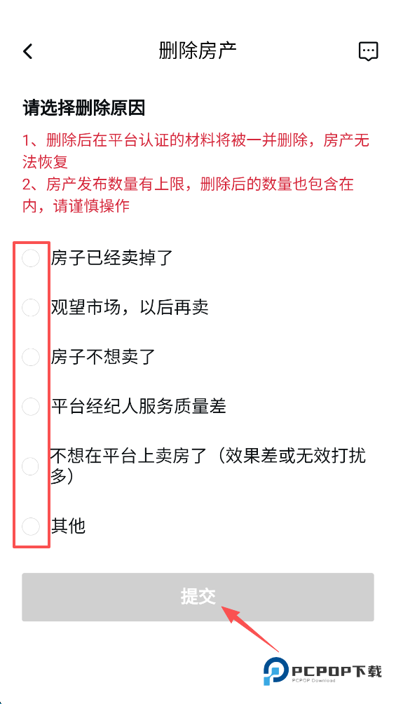 7、选择一个原因,随后点击屏幕下方的“提交”。