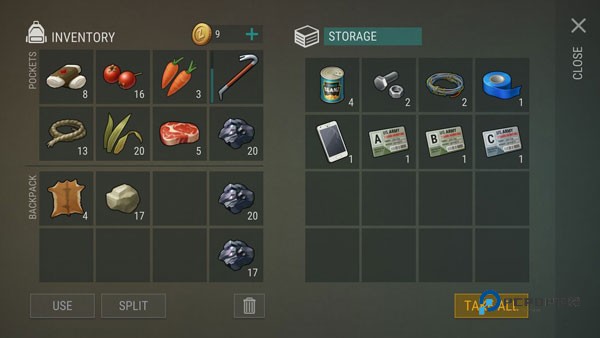 吃的东西喝的东西,我们还是要留一部分在我们自己的背包里,我们要随时查看我们自己的状态,状态不好了的话,你要记得及时的使用我们背包里的物资来进行补充。