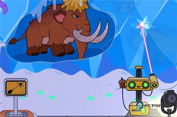 4、例如这里小编拖动激光将冰块融化,将可以看见长毛象以及小企鹅哦;