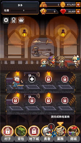 6、地下城足够强大的勇者才能从地下城活着回来,战斗胜利后能够获得黄金、宝石和更高级的武器。战斗胜利后还会提升名声,达到一定名声值就会有新的居民来铁匠铺