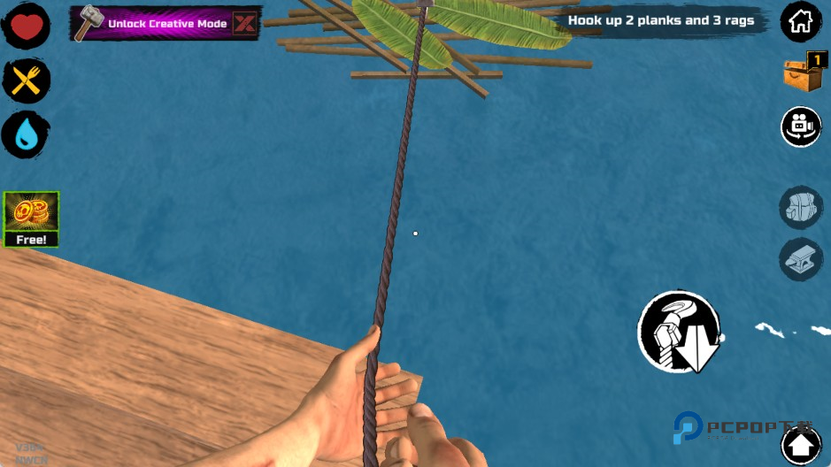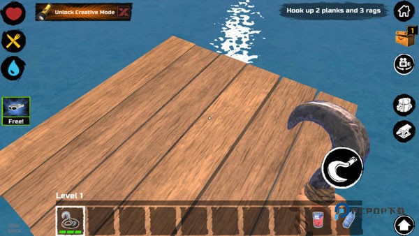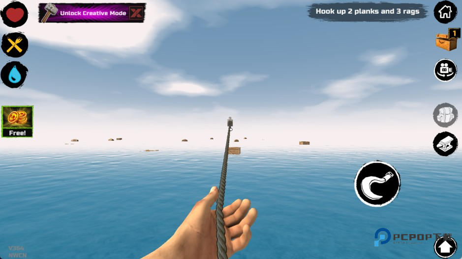 3、你所拥有的只是一个带绳子和木筏的钩子。你所要做的就是在这里生存。