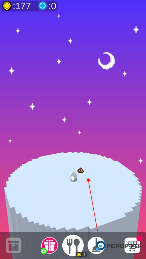4、吃过饭后,小企鹅可能会拉屎,点击右侧的马桶塞,就可以净化了。