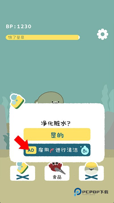 4、当水变浑浊时,可点击水过滤来免费清洁鱼缸,如果不想花太多时间关注,那么就看个广告用虾来保持8个小时水缸清洁