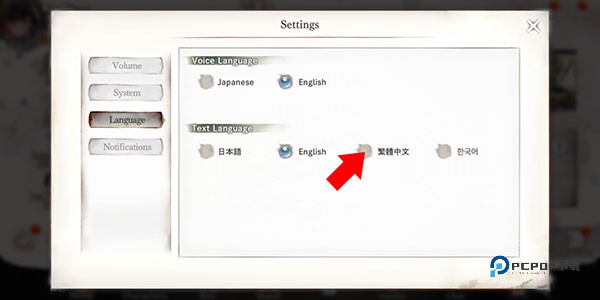 4、进入Language界面,在Text Language栏目下勾选【繁体中文】即可,