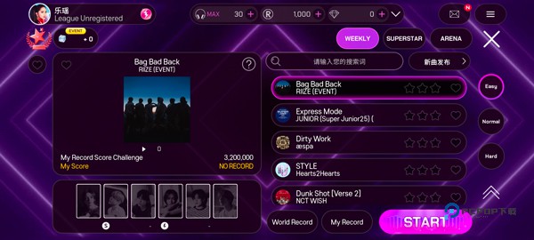 1、全新“超级明星联赛”!每日更换的挑战曲目,连续7日的总计分数将用来竞争排名