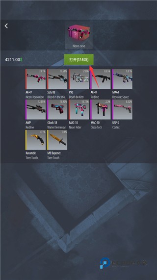 模拟开箱几率和皮肤价值将与真实cs游戏基本维持一致,是时候证明自己是非酋还是欧皇!