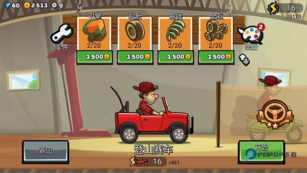首先升级你的轮胎或提高发动机其次是前悬架和四轮驱动(不同车子能升级的项目有点差别),升级发动机到3级左右,然后慢慢的把其他几项也都提升到3级左右,之后有钱了再去升级发动机和轮胎,如此反复进行。车辆性能好了,也能帮助我们更轻松的过关。