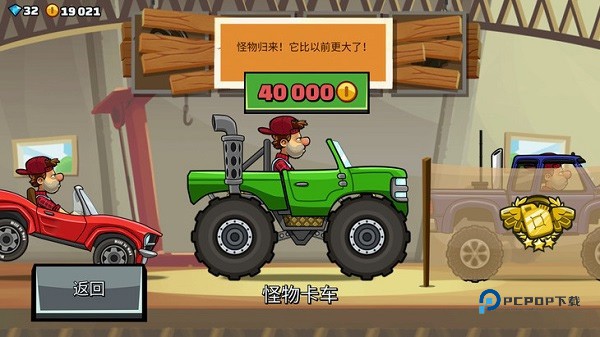 大柴油车(怪物卡车):很鸡肋的一辆车,虽然轮子很大,稳定性还不错,但是速度那是真心跟不上啊,而且过那种有凹的地方,也很麻烦。所以,小编是不建议升级大柴油车的。