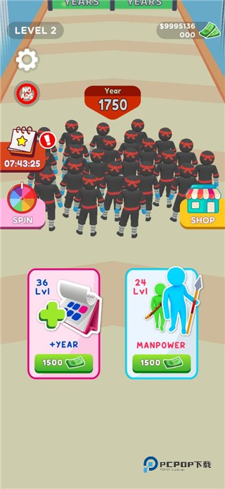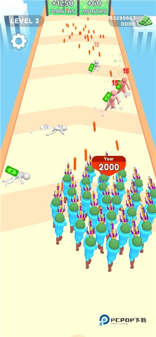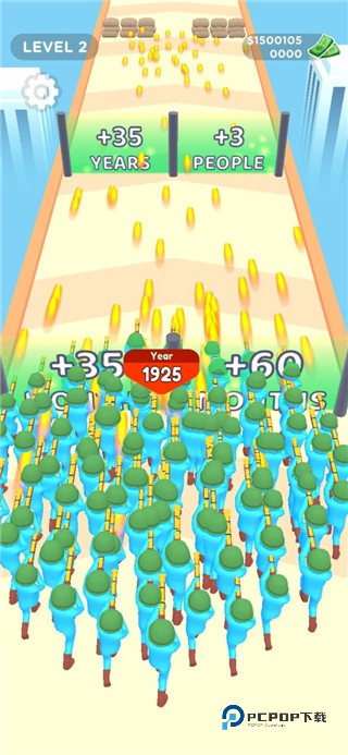 人群进化中文版是一款十分有趣的跑酷冒险类游戏,美术风格上采用了跑酷常见的3D卡通画风,蓝色的可爱火柴人会伴随所处年代的不同,穿上各种具有特色的服饰,罗马帝国士兵的短刀与盾牌、带着斗笠的弓弩,现代战争中的支以及未来世界的激光等。人群进化中文版下载中玩家需要控制主角的行动,及时的去躲避途中的各种障碍物,并且收集更多的金币等宝物。