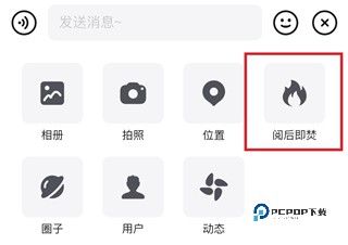 2、在弹出的功能栏里点击【阅后即焚】这个功能。