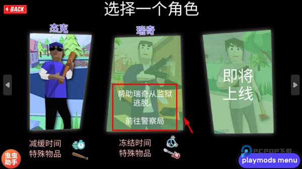2、游戏内要解锁第二个人物需要先用第一个人物杰克前往警察局,帮助瑞奇从监狱逃脱。