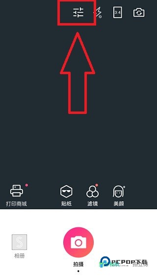 1、打开相机,点击上方的设置