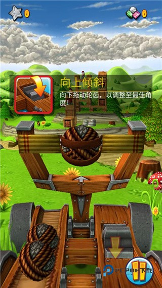 7、向下拖动齿轮可以让你的弹弓向上倾斜,方便你调整一个最佳角度;