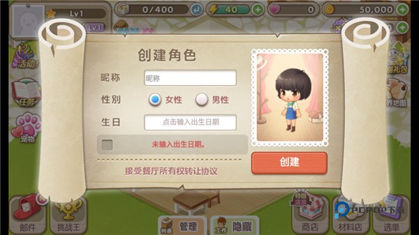 3、创建角色时,输入你的姓名和出生日期,开启全新的游戏冒险。