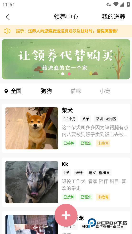 2、点击领养功能,还能查看等待被领养的宠物,公开规范