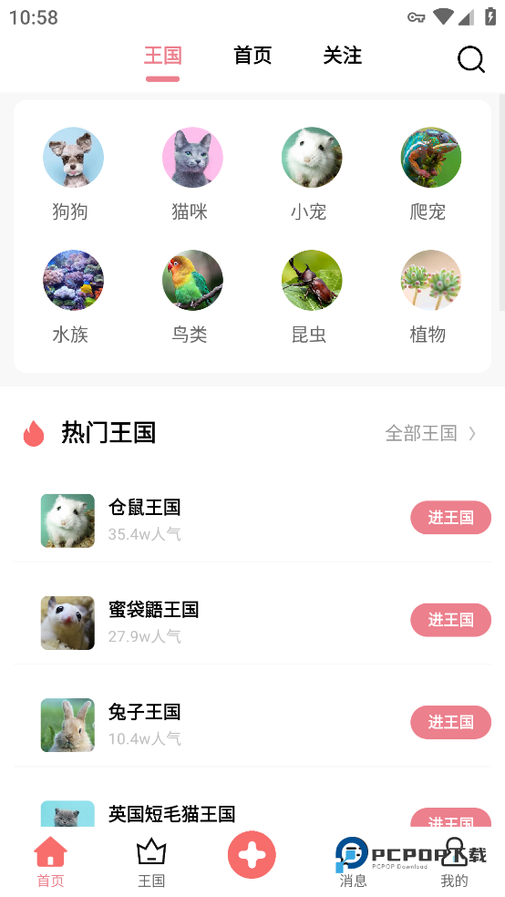 3、点击首页的王国,还能进入到众多有趣的分类社区,看到许多有趣的宠物与经验分享视频