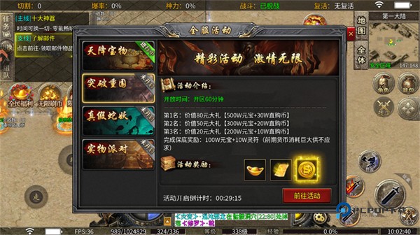 完成保底奖励:100W元宝+10W灵符(前期货币消耗巨大供不应求)