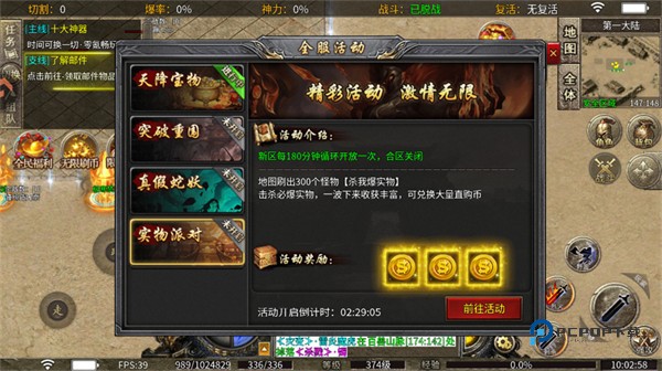 地图刷出300个怪物[杀我爆实物],击杀必爆实物,一波下来收获丰富,可兑换大量直购币