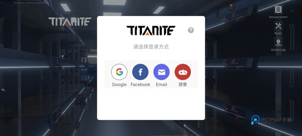 1、打开泰坦机甲手游,游戏需加速器启动,新玩家需注册账号登录或者游客登录;