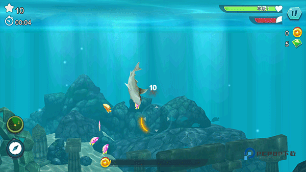 3、熟悉操作后,玩家将控制鲨鱼在海洋中进行捕食;