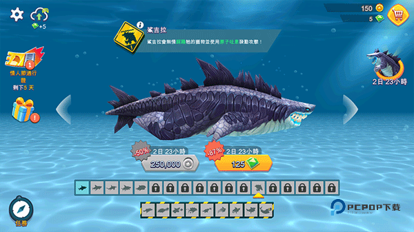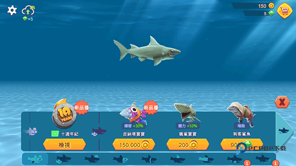 1、可以收集各有7种不同大小的20类鲨鱼品种,扮演敏捷的双髻鲨,甚至到著名的大白鲨!