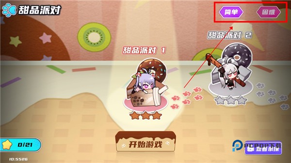1、打开盲盒派对国际服,点击开始选择关卡,并选择难度,现有简单和困难两种;