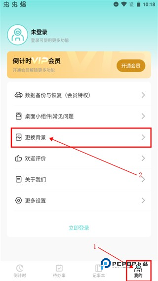进入倒计时软件,点击“我的”页面,点击“更换背景”