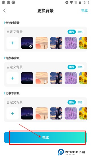 选择好不同功能的背景图后,点击“完成”,返回桌面小组件同步更换背景图