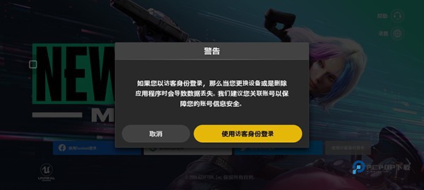 2、点击游客登录后,会让你决定是否用这种方式登录。