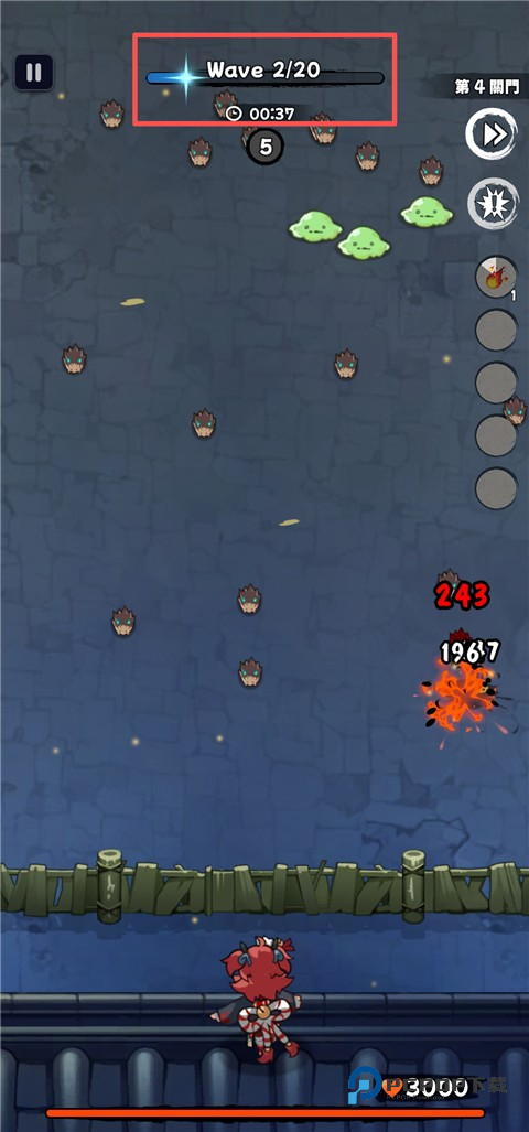 3、界面上方的数值清晰展示了当前敌人波次以及关卡的总波次数,方便玩家掌握战斗进度。