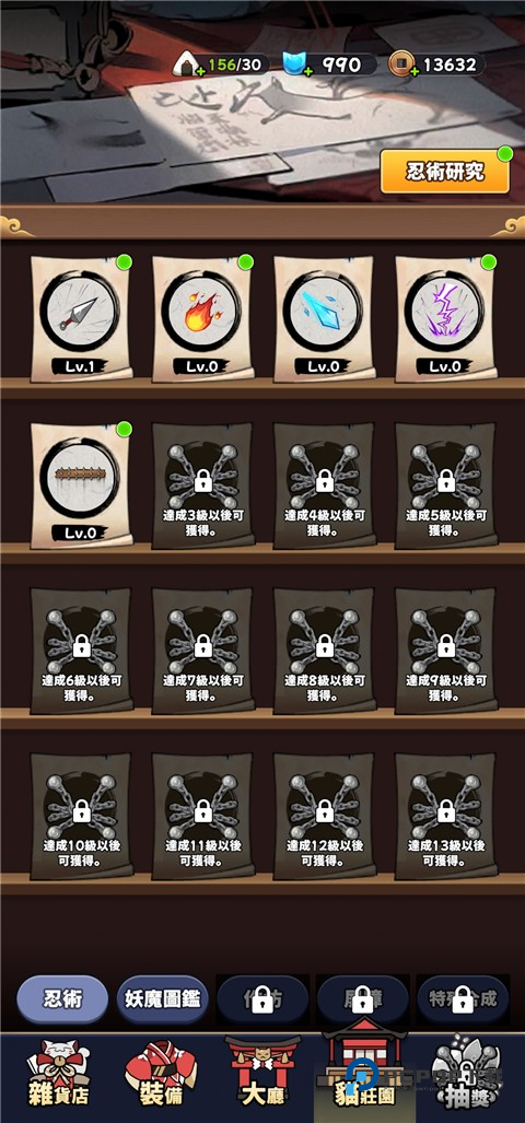 1.升级成长系统:通过战斗和完成任务,猫忍可以获得经验值和道具,提升自身属性和技能等级,变得更加强大。