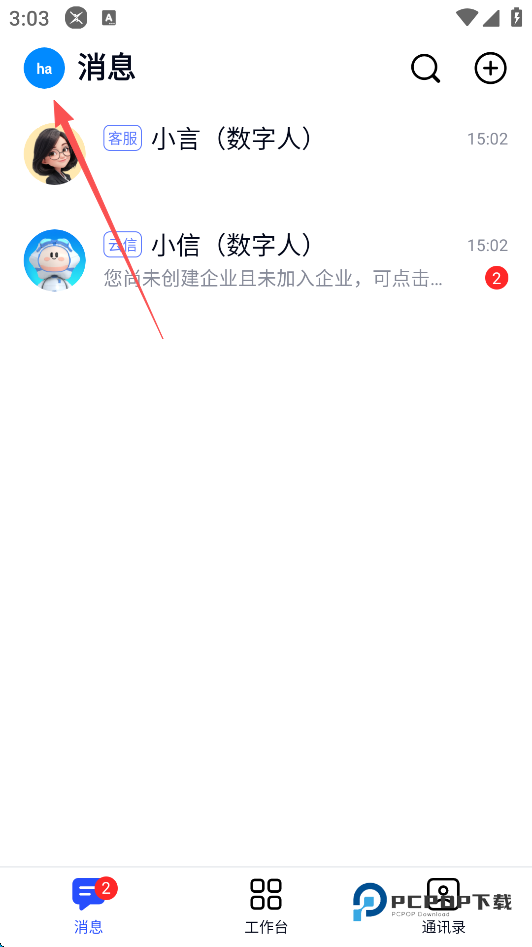 1、点击屏幕左上角的“头像”标识。