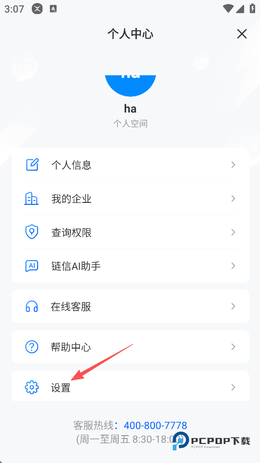 2、点击屏幕下方的“设置”。