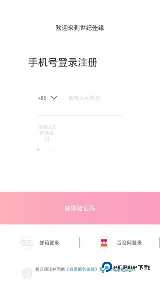 2、进入app后,填写你的手机号进行注册等信息,也可以用邮箱、百合网账号登录,登录前需要勾选下方“我已阅读并同意”协议。