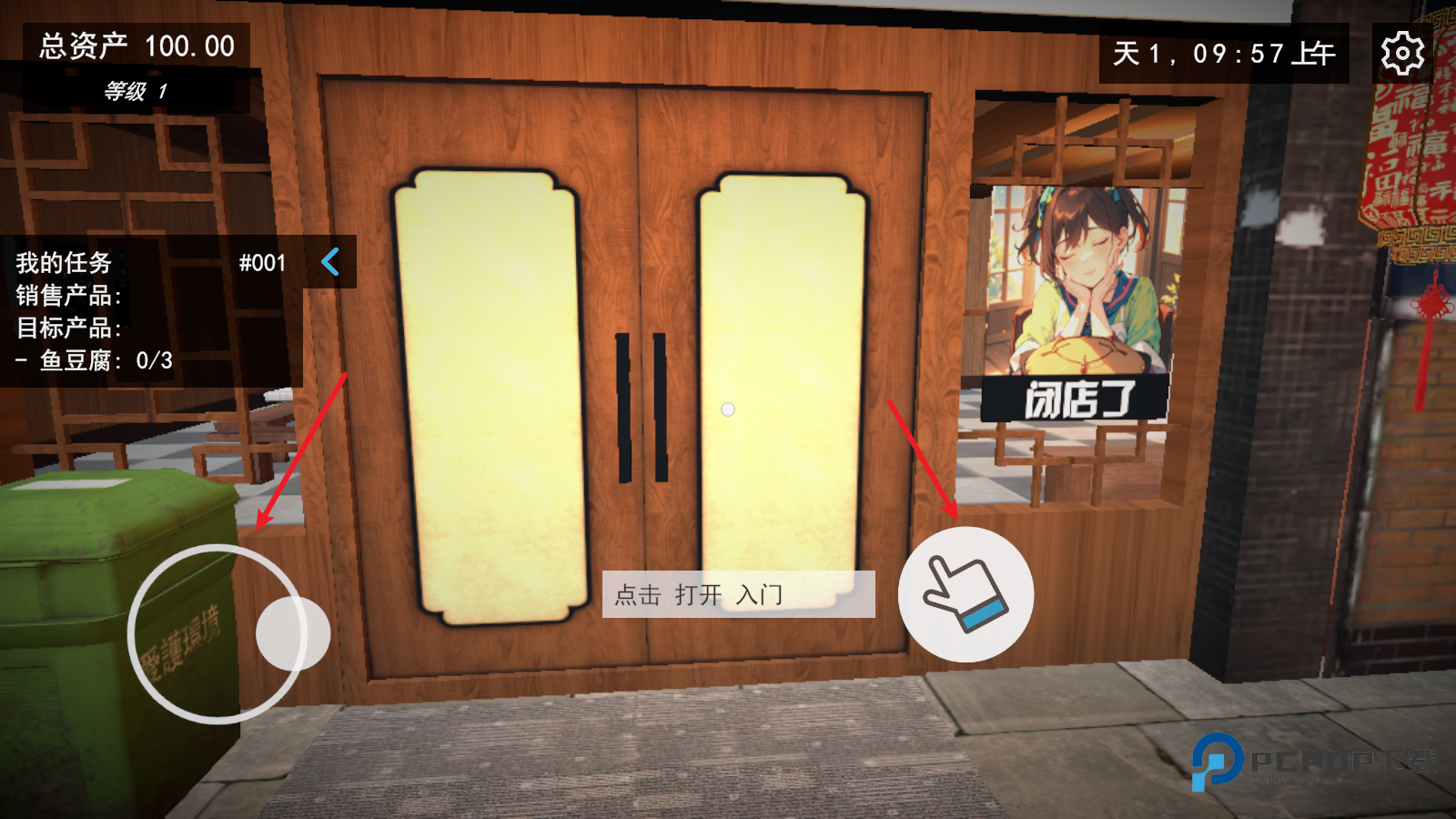 1、进入游戏后,通过左侧的虚拟摇杆进行移动,靠近物品后就会出现交互按钮。