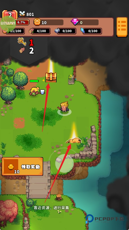 5、探索地图时,遇到随机出现的宝物点,只要靠近站立即可自动触发互动,轻松获得额外奖励。
