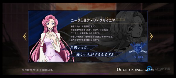 3、等待数据资源下载,期间玩家可左右滑动屏幕查看角色介绍;