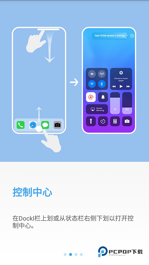 在dockl栏上划或从状态栏右侧下划以打开控制中心。
