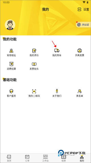 1、打开app后,需要选择登录的角色,选择货主并进入主页面,切换【我的】界面,点击我的功能里面的“我的熟车”。